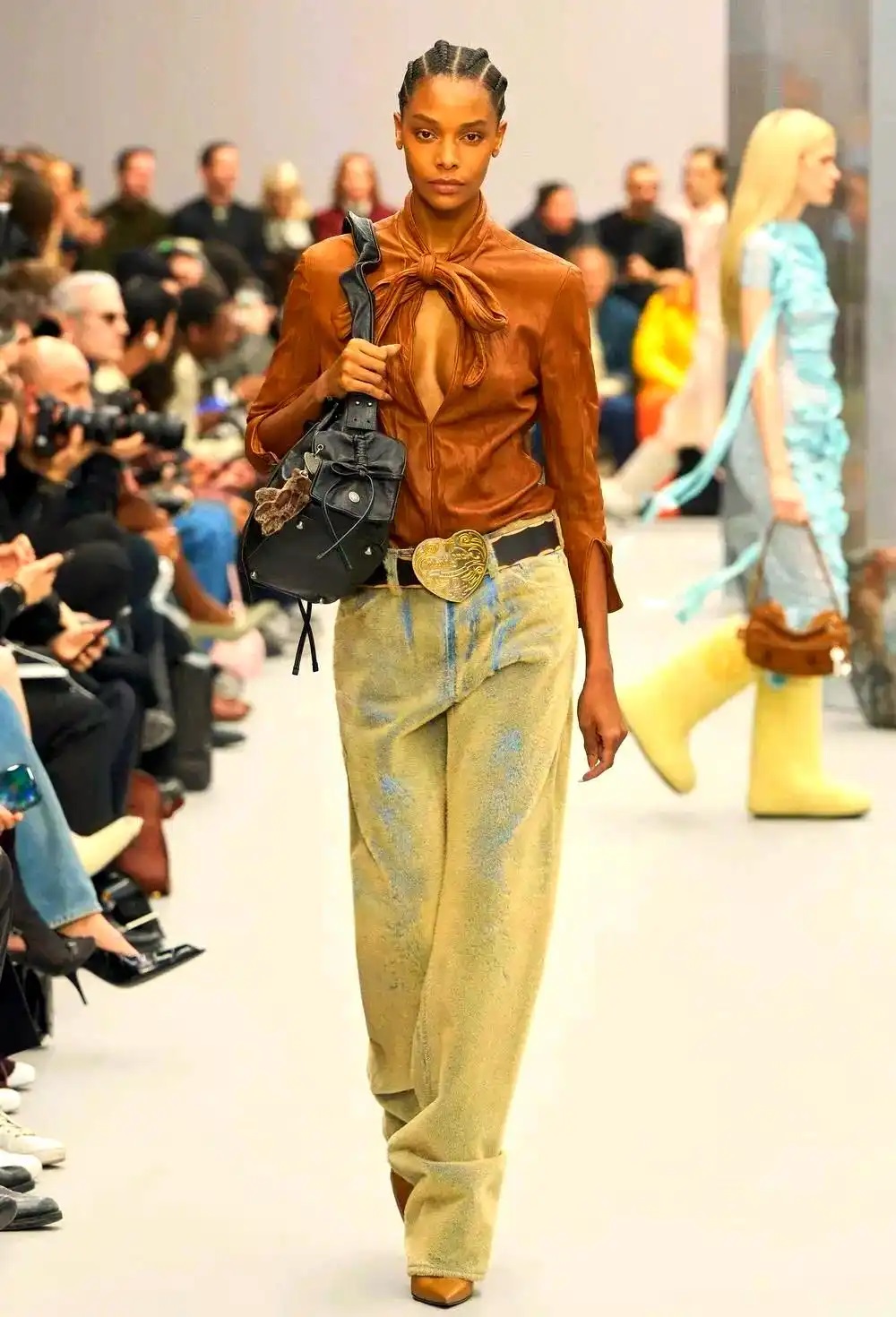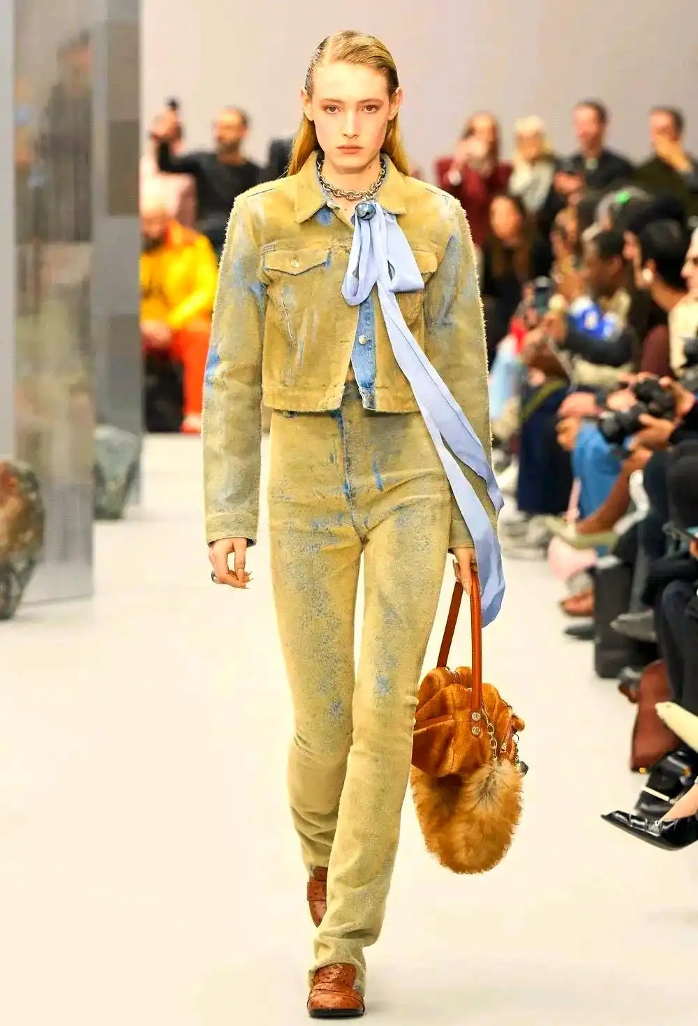 在2025/26秋冬時裝周上,牛仔元素實(shí)現(xiàn)視覺與觸覺的雙重突破。通過纖維混紡的創(chuàng)新,設(shè)計(jì)師不僅在視覺上帶來了全新的體驗(yàn),更讓穿著者感受到前所未有的舒適與質(zhì)感。從T臺上走下來的每一套造型,都讓人忍不住伸手去感受那不一樣的觸感與視覺沖擊。這種突破不僅停留在表面,更深入到穿著者的內(nèi)心,帶來了一場關(guān)于時尚的全新體驗(yàn)。